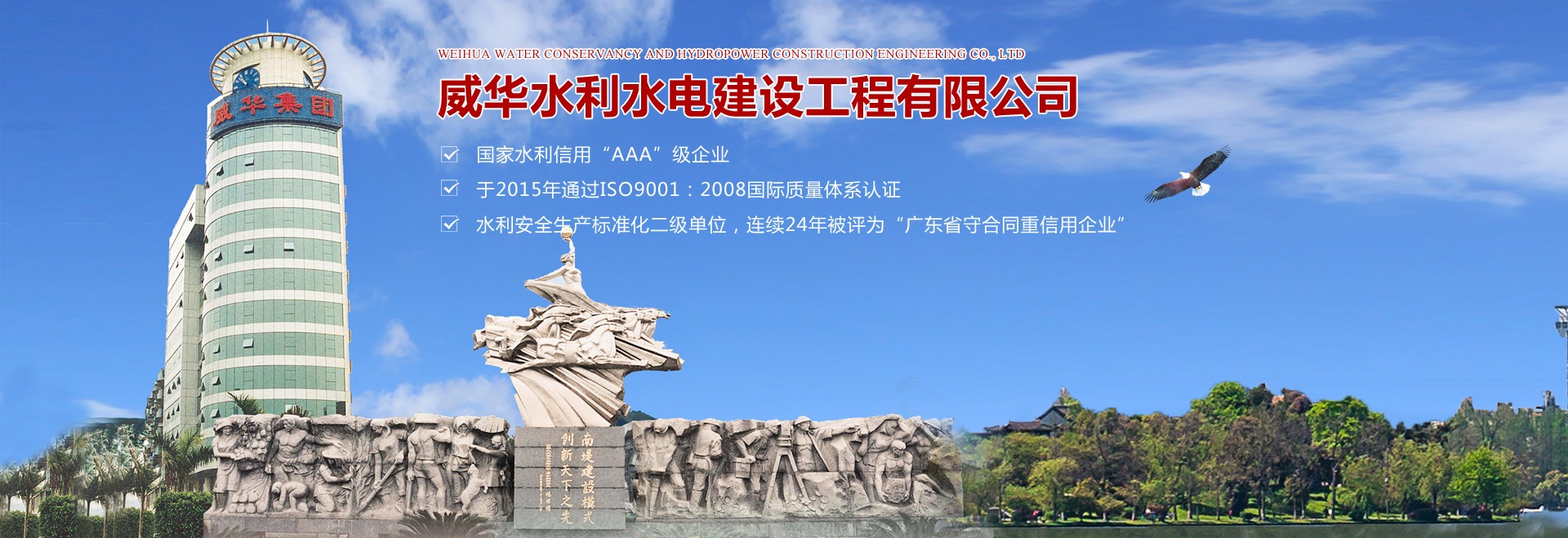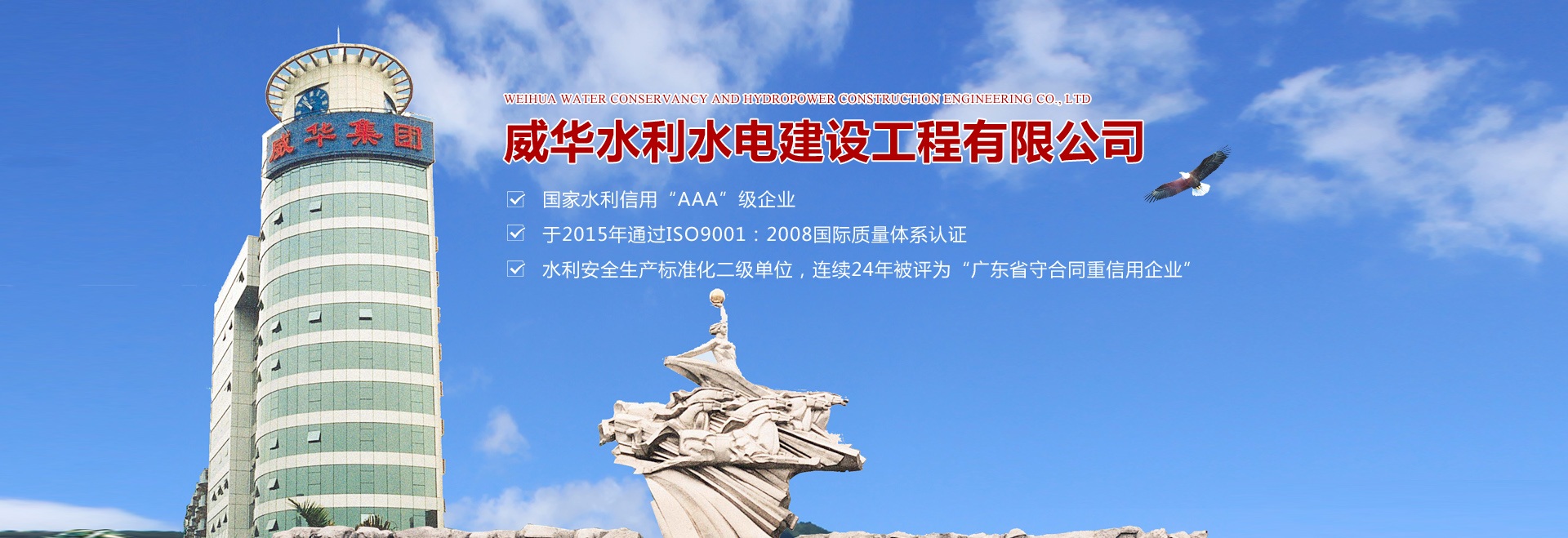 梅州市威華水利水電建設工程有限公司是廣東威華集團旗下全資子公司,主要從事 “水利水電工程”及“工業(yè)與民用建筑工程”施工。公司成立于1992年,注冊資本9180萬,是一家具有水利水電工程施工總承包二級資質,房屋建筑總承包三級資質,市政總承包三級資質的一家大型民營施工綜合類企業(yè)。 公司現(xiàn)有各類工程技術、管理人員200多人,其中具有大專、本科以上學歷的占90%,具有中級以上職稱的人員80人,建造師90多人,專業(yè)人員包括水利水電、建筑、市政工程等。專業(yè)結構合理、人員配置齊全。公司擁有二級總承包各項施工大型機具100多臺套。 公司現(xiàn)累計完成各大中型水利水電工程200余項,現(xiàn)代化工廠房30多宗,寫字樓及商住房20余項,合計建成水庫庫容10億m3,堤防建設300公里長,總建筑面積100萬㎡。 為進一步發(fā)展和壯大企業(yè)實力,提高企業(yè)的市場競爭力,公司領導深刻地認識到質量是企業(yè)生存之本,發(fā)展之本,不斷提高企業(yè)質量管理水平,并與國際接軌,嚴格按照“規(guī)范施工、優(yōu)異服務、確保業(yè)主滿意”方針,貫穿于施工管理全過程。公司是國家水利信用“AAA”級企業(yè),于2015年通過ISO9001:2008國際質量體系認證,水利安全生產(chǎn)標準化二級單位,連續(xù)24年被評為“廣東省守合同重信用企業(yè)”。